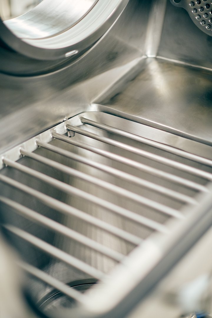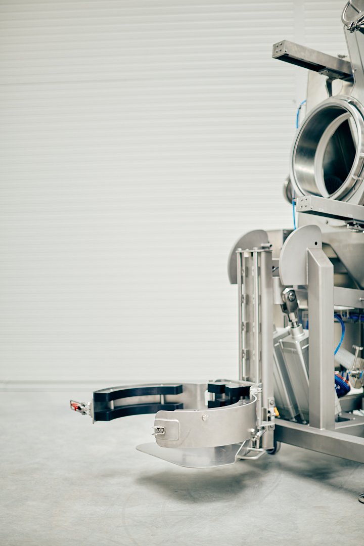 - Fass wird durch eine spezielle Hubvorrichtung auf der Rückseite der Glovebox angehoben