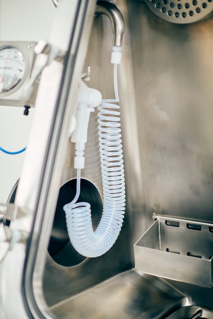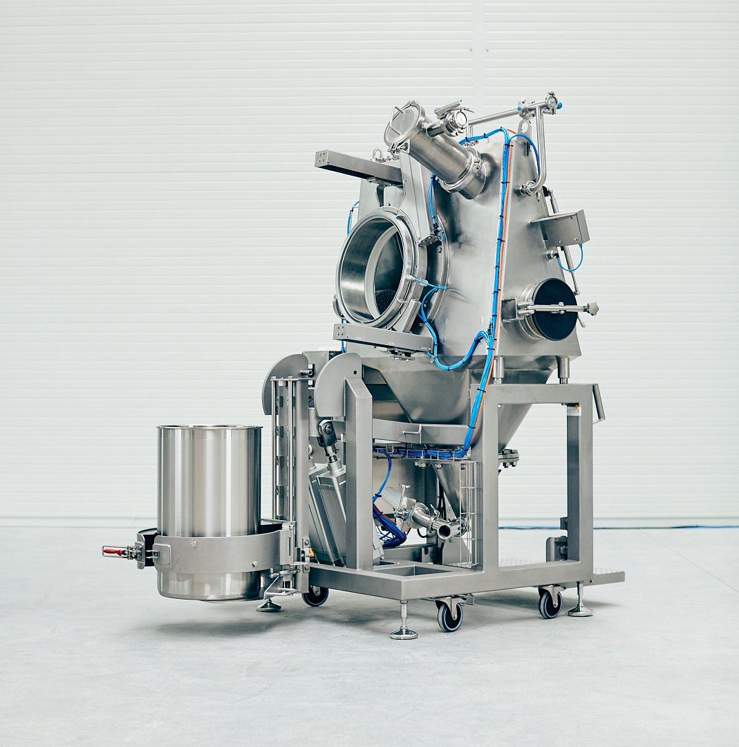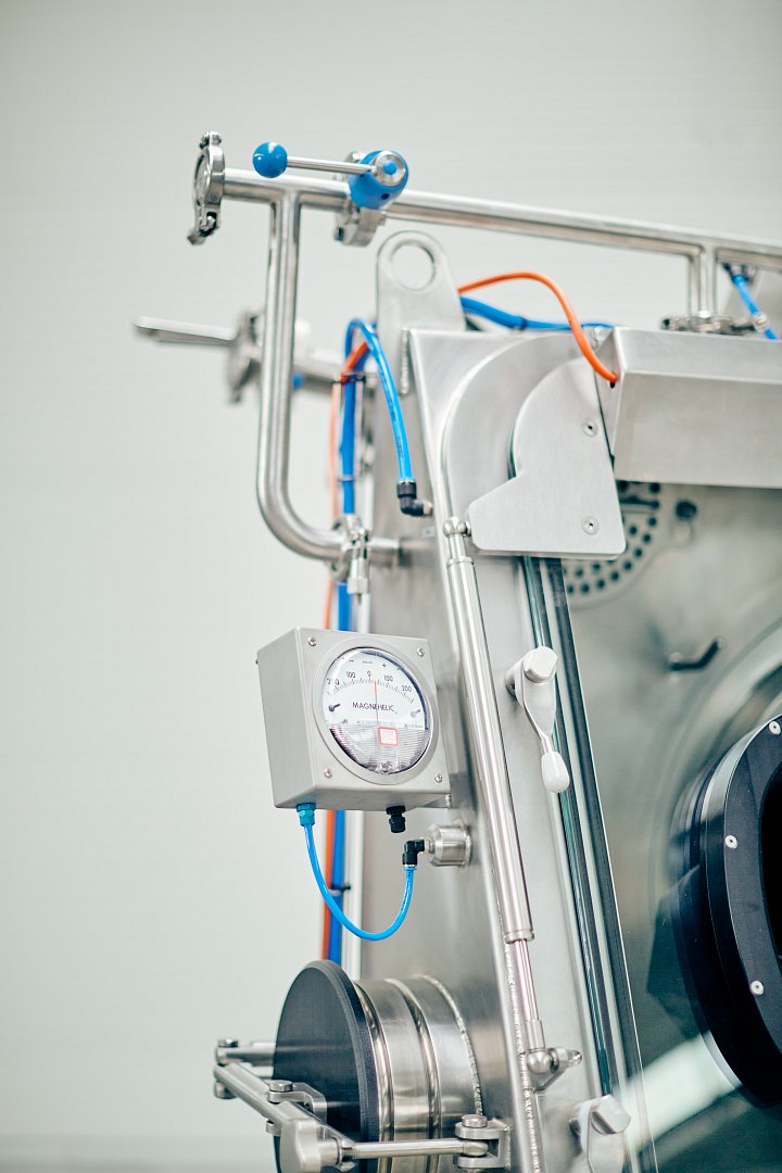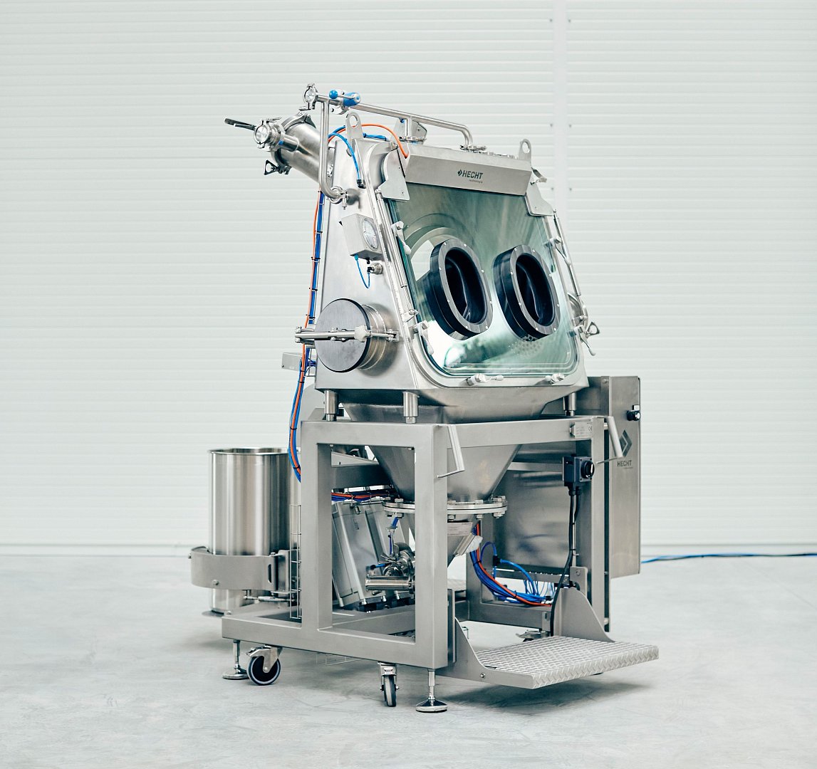 - Fass wird in die Glovebox geschoben und Rohstoff entleert